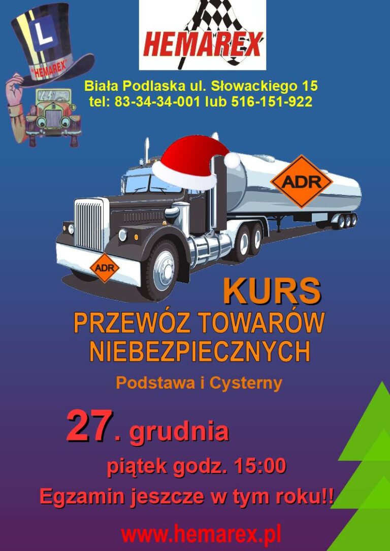 - kurs specjalistyczny – uprawniający do przewozu w cysternach.